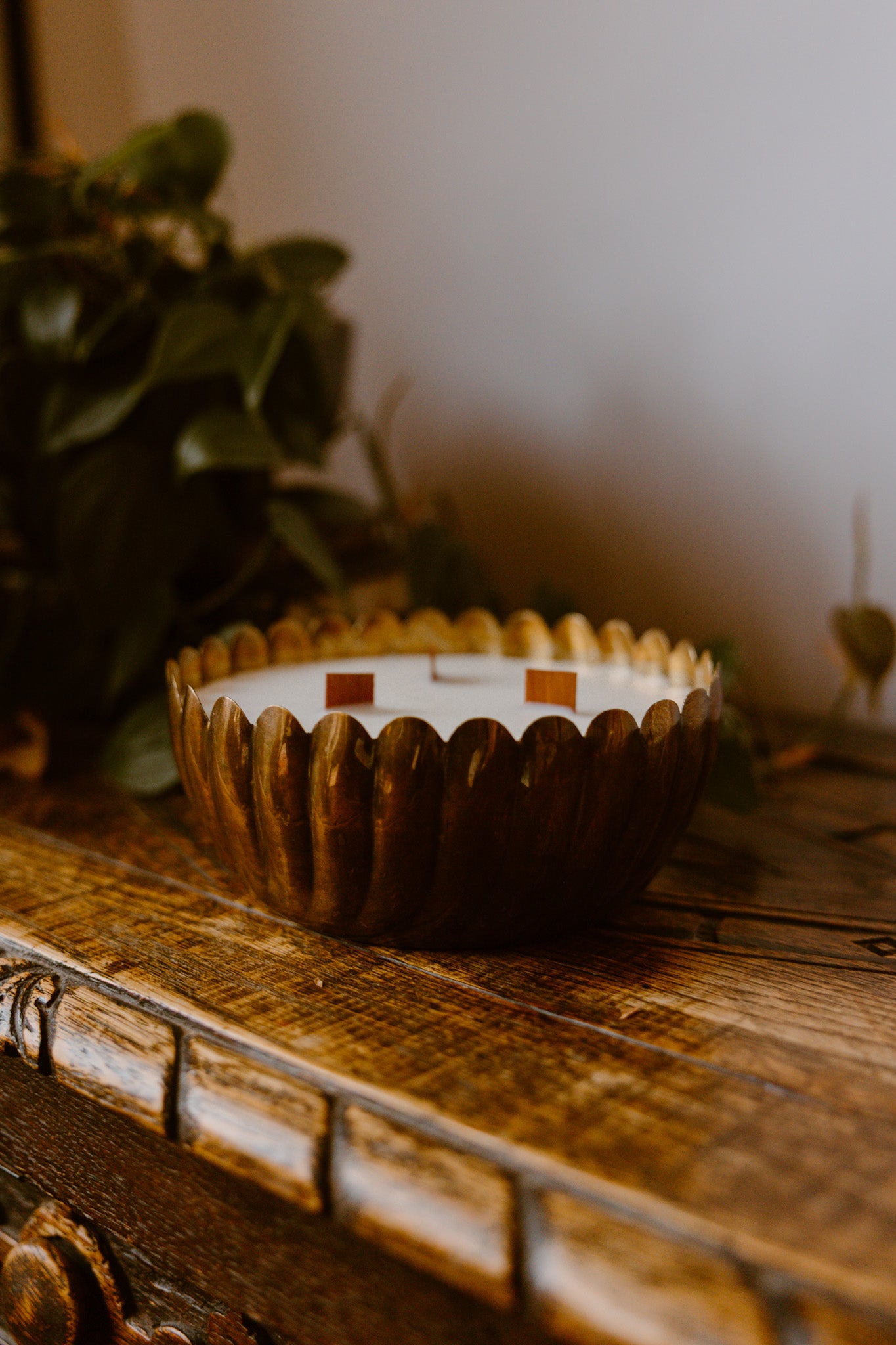 Adorn your home with the elegant gilded scallop edge candle, a luxurious piece that effortlessly blends vintage charm with modern sophistication. Housed within a beautifully crafted, warm brass-toned metal bowl featuring a unique, decorative scalloped rim, this candle is a true statement piece for any room. The presence of multiple wooden wicks creates a wide, even melt pool and a subtle, cozy crackling sound as it burns, enhancing the relaxing ambiance. Hand-poured with a premium, clean-burning soy-based wax blend, it promises an inviting fragrance experience and a cleaner burn. The durable and stylish metal vessel is a timeless keepsake and can be beautifully repurposed as a decorative bowl, planter, or unique storage item once the candle has finished its burn.